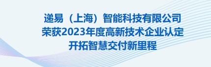 递易(上海)智能科技有限公司以其杰出的研发能力、众多知识产权专利技术以及突出的综合技术应用水平,成功被再次认定为高新技术企业。